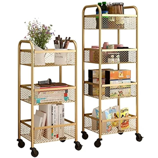 3 Tier Rolling cart, Kitchen Rotating Storage Rack, Kitchen Cart with Storage Rotating Basket for Vegetables and Fruits