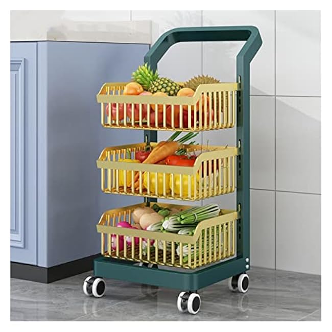 2/3/4/5 Tier Rolling Cart Organizer, Snack Storage Cart, Mobile Storage Shelf with Lockable Caster Wheels, Multifunction Kitchen Storage Organizer, for Livingroom, Office & Narrow Places (4-Tier)-UobOwTtg