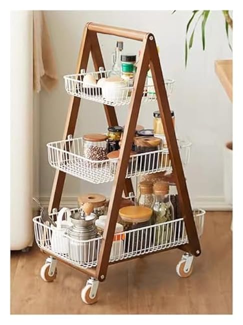 3 Tier Rolling Cart on Wheels, Wood Coffee Cart, Storage Islands for Kitchen Room, Living & Bedroom(11.8 * 13.8 * 32.3in,A)