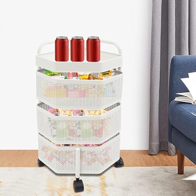 - ¡¾?? 360¡ã ROTATING DESIGN & REMOVABLE BASKETS¡¿ Features smooth 360¡ã rotation for easy access to all items. Three removable mesh baskets with magnetic attachment allow flexible organization and effortless cleaning. Note: Bottom basket is fixed for stability while upper tiers rotate freely.