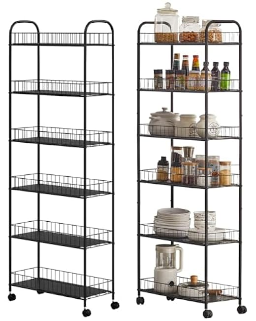 - ??¡¾???????????? & ?????????????? ????????????????????????¡¿The fruit and vegetable storage rack is made of high-quality carbon steel, which is hard, rust-resistant, and not easily deformed. The rolling kitchen cart has 5 spacious storage baskets and a large-capacity top platform with strong storage load-bearing capacity.