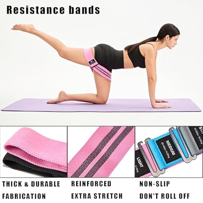 Adjustable Fabric Resistance Bands for Squats, Glutes & Legs ¨C 5 Levels of Customizable Size, Width & Tension, Non-Slip Booty Bands for Men and Women, Pilates & Yoga Workouts(Medium)