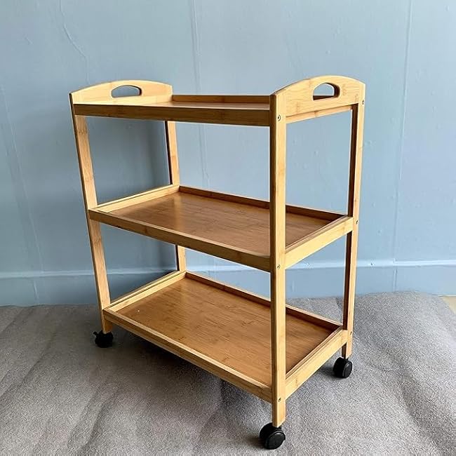 - ?????????????? ???????????????????????? ???????? – With 3 layers of shelves, the kitchen trolley storage is a handy solution for limited counter. It is also a snazzy blessing throughout the party time to mingle and serve guests while also showing off their wine, gins etc. A simple and elegant 3 Tier Serving utility cart in Bamboo.