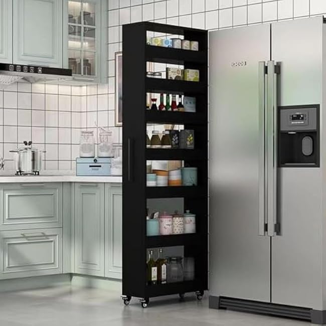 Bar Cart with Glass Door, 2-Side Shelves and Casters-fROTeZgJ