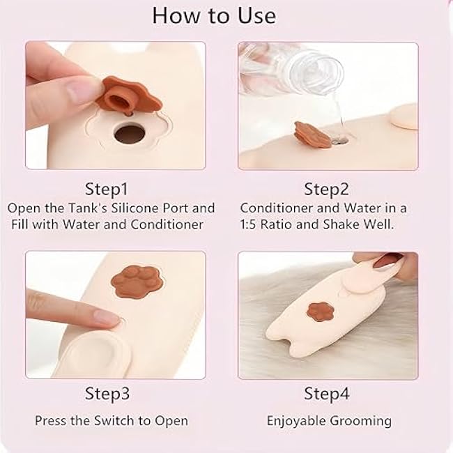 - UNIQUE ELECTRIC SPRAY SYSTEM£ºNo more flyaway hair or static! The built-in spray tank holds water, shampoo, or conditioner, releasing a fine mist to refresh coats without baths¡ªperfect for water-hating cats!