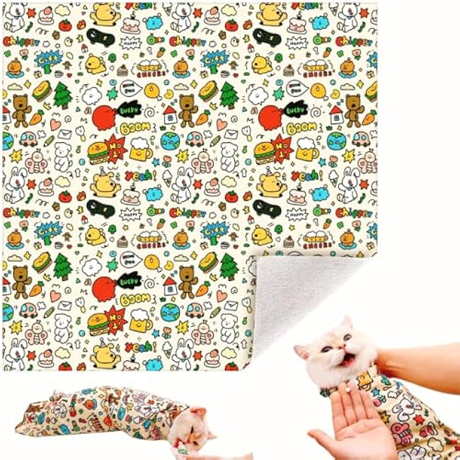Cat Grooming Wrap¨C Self-Adherent Anti-Scratch Wrap for Cat Stress-Free Nail Clipping, Ear Cleaning, Taking Medicine (L, Graffiti)-Ob0TN28L