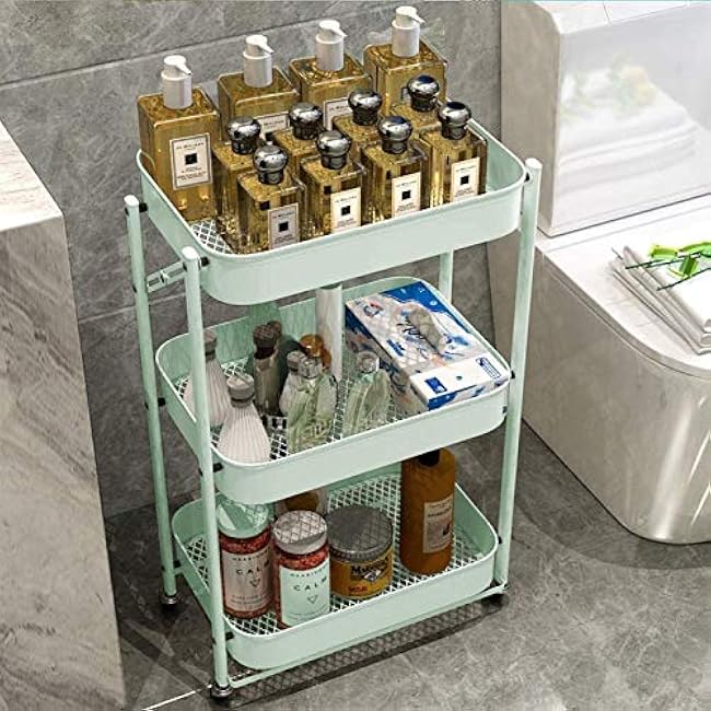 Exquisite Bathroom Shelves Carts,Trolley Folding Office Storage Shelf Folding with Wheels 3-Tier Slide Out Storage Cart with Two Lockable Wheels for Bathroom, Kitchen, Bedroom,White-Xk8bxnSK