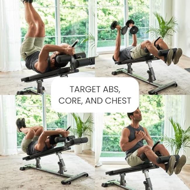 Finer Form Semi-Commercial Sit-Up Bench For Core Workouts and Decline Bench Press. Adjustable Weight Bench with Reverse Crunch Handle with 4 Adjustable Height Settings. Great Ab Workout Equipment