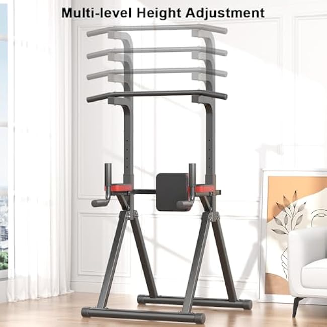 Foldable Power Tower, Adjustable Multifunction Pull Up Bar Tower Station, Pullup Dip Station Rack for Home Gym