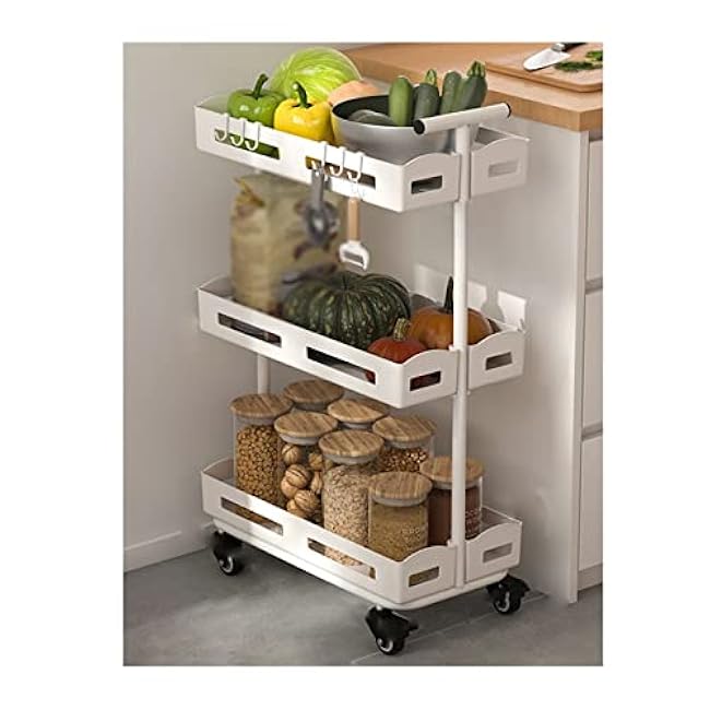 Functional Storage Trolley with Wooden Tabletop, Movable Bedside Table, Movable Multi-Tiered Living Room Snack Books Fruit Organizer Carts, Suitable for Bedroom, Living Room, Kitchen(Beige)-qBg7AEF0