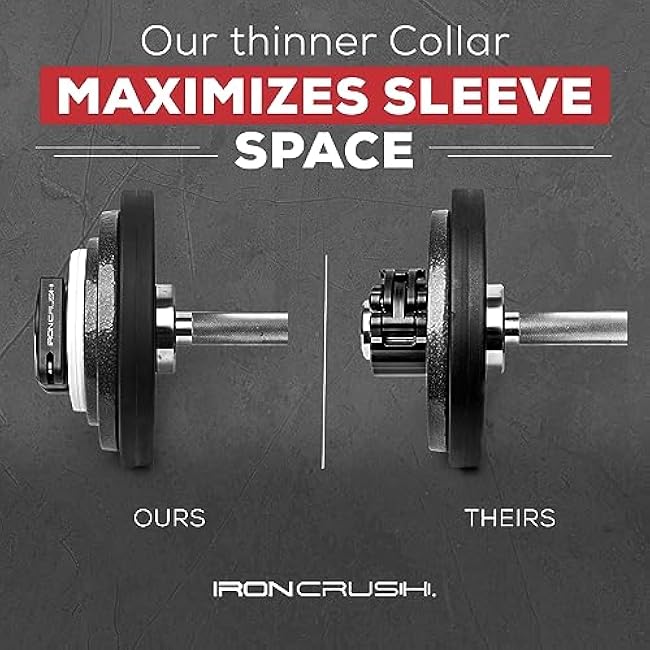 Iron Crush Olympic Barbell Clips – Adjustable & Slim Gym Clamps for Maximum Weight Capacity – Quick Release Barbell Collar Bar Locks for Weight lifting Fitness Training (Black)