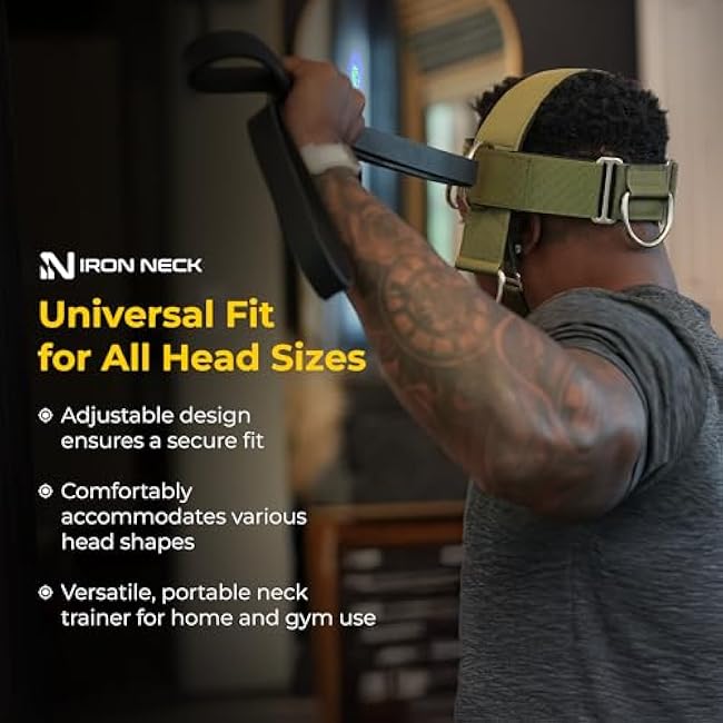 Iron Neck, Versatile Neck Exerciser, Strengthener and Trainer with Adjustable Head and Chin Strap, Portable Head Harness for Weight Lifting, Home and Gym Use