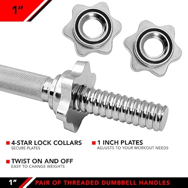 JFIT Threaded Dumbbell Handles, Set of 2, with Star Collars, Fits 1¡± Standard Plates
