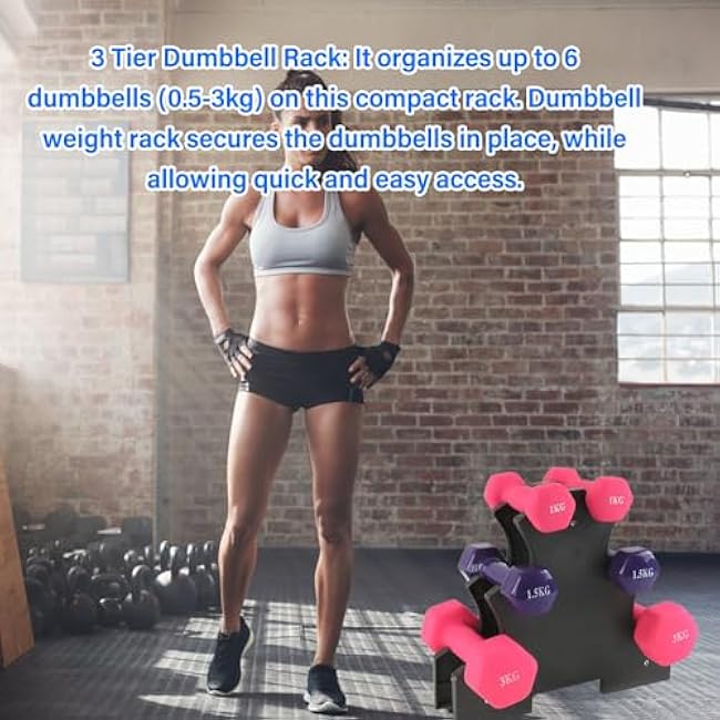 Keenso Dumbbell Rack,20kg Bearing 3 Tier Weight Rack Stand for Home Gym