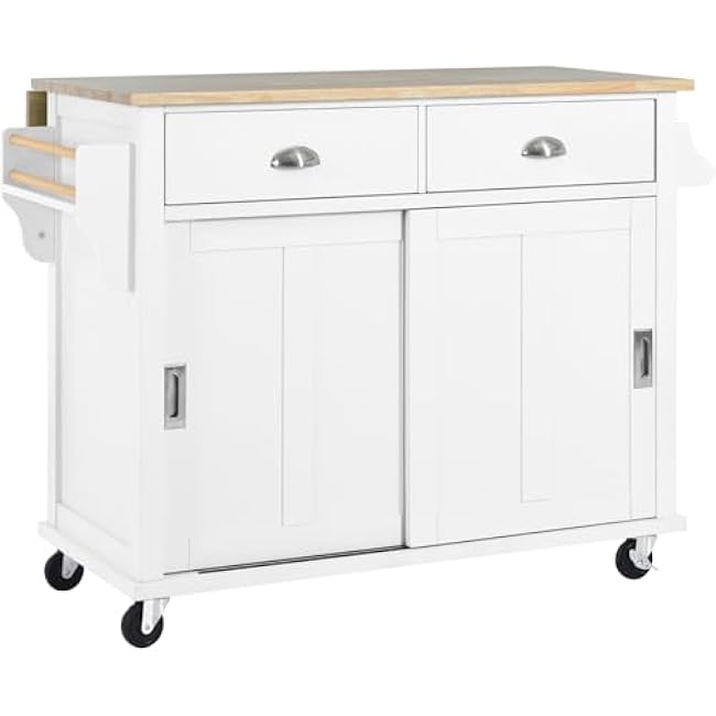 Kitchen Island Trolley Rolling Kitchen Island with Storage Utility Wood Tabletop, Wood Mobile Kitchen Island Serving Cart On Wheels with Towel Rack Rolling Kitchen cart