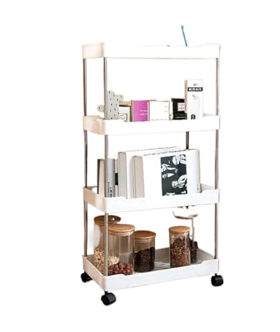 MOOACE Industrial Kitchen Rolling Cart with Wheels, 4-Tier Wood Cover Design Storage Snack Coffee Cart for Living Room, Office, Bathroom-Ur9zc8Ps