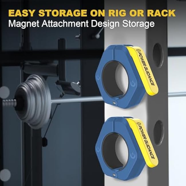 POWER GUIDANCE 2 inch Magnetic Barbell Collars, Quick Release Barbell Clamps for Olympic Lifts and Strength Training (Blue)
