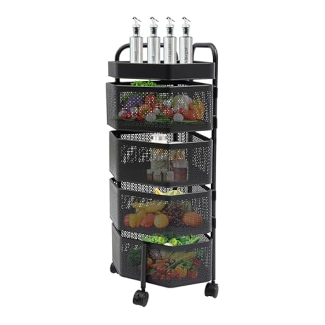 - User-friendly Design: The upper 2 baskets can be rotated for easy access to your items and their heights can be adjusted for storing daily supplies with different heights. The removable bottom basket can be used separately for a veggie/fruit-serving basket.
