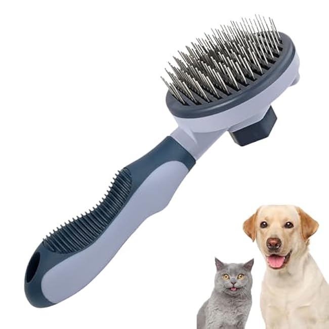 - One-Push Hair Release System – Features an innovative self-cleaning mechanism: Simply press the button to eject trapped hair instantly. Dual-length pins provide all-in-one detangling, de-shedding, and flea control