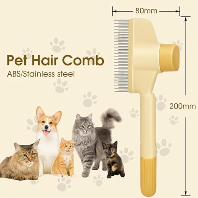 Self-Cleaning Cat and Dog Comb ¨C 2-in-1 Pet Hair Removal and Flea Comb with Stainless Steel Teeth and One-touch Release Button, Suitable for Hair Removal, Detangling, and Grooming Yellow