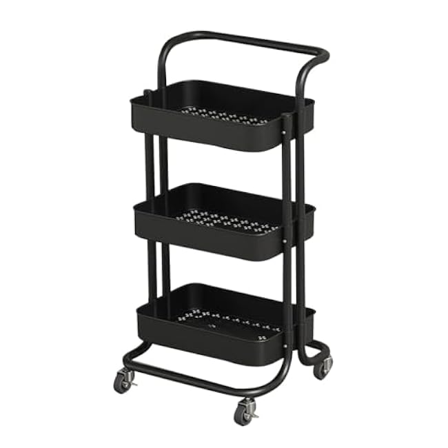 Slim Rolling Storage Cart with Handle, 19W x 6D x 32H inches, White Metal Frame, Wood Top-lwCCLmfe