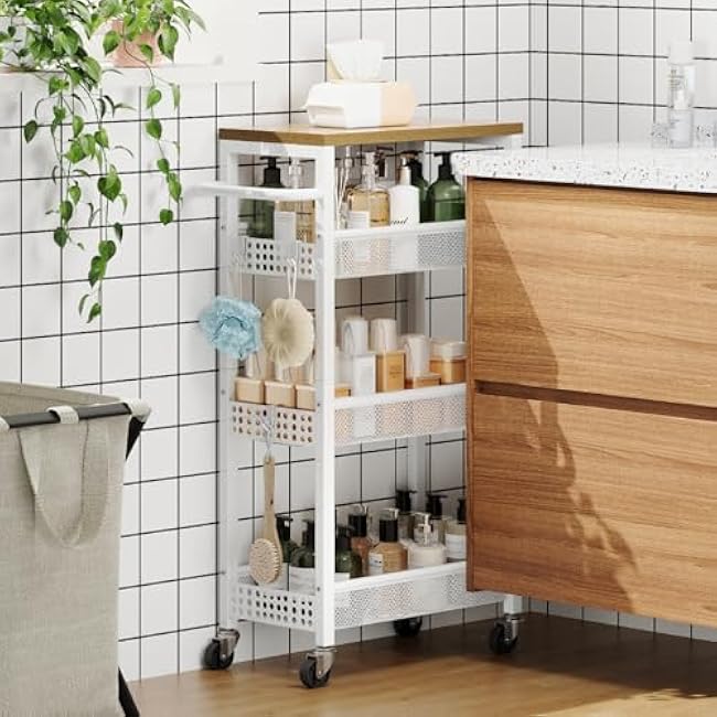 - Flexible Slim Storage Cart: The bathroom rolling utility cart is equipped with 360¡ãrotating wheels, the storage cart can be moved to any corner of the house to store items. You can flexibly use it for storage in office, bathroom, laundry room, kitchen, narrow places,etc
