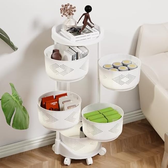 Stackable Metal Storage Cart Utility Cart on Wheels Fruit Vegetable Storage Basket Snack Rack Multi-Layer Shelf Countertop Organizer Kitchen, Bathroom, Living Room, Office Organization