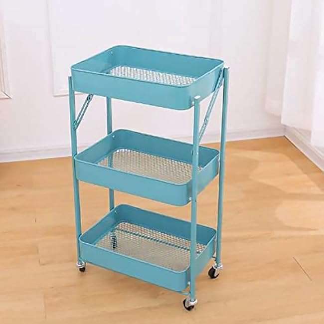 Trolley Rack Movable 3-Tier Floor-Standing Vegetable Basket Rack with Wheels