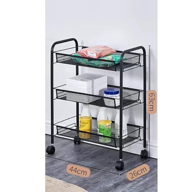 Trolley Rack Movable 3-Tier Floor-Standing Vegetable Basket Rack with Wheels-pUIAqdOw