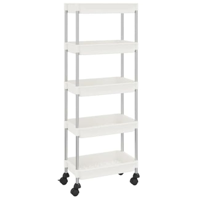 Vegetable Cart for Kitchen with Wheels – 5 Tier Rotating Storage Rack, Multi-Functional Rolling Pantry Cart for Fruits, Vegetables, Kitchen Essentials White Square