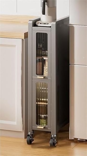 Wood Slim Storage Cart,Rolling Spice Rack Next to Fridge Slim,Rolling Cart for Kitchen Dining Room Dark Walnut 5.9¡Á17.7¡Á72.4in-FIZKHvuv