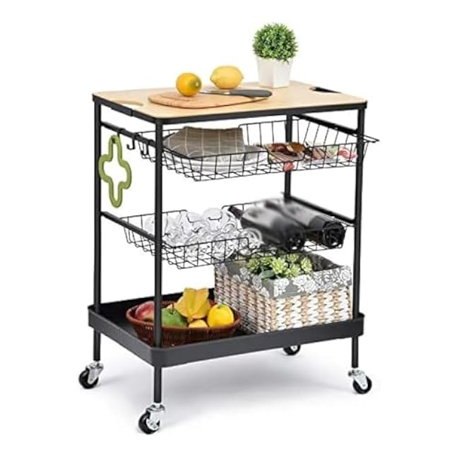 Wooden 3 Tier Serving Tea Cart with 360¡ã Wheels for Kitchen Storage and Dining,Natural,55x55cm