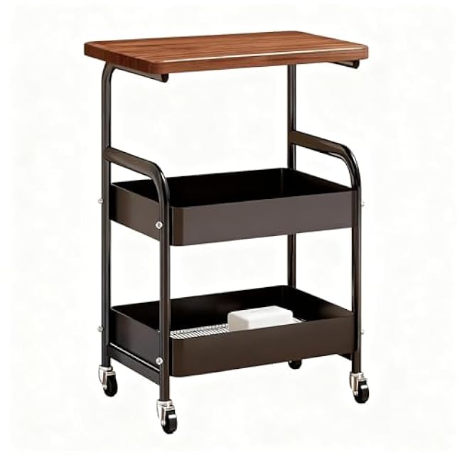 Wooden Rolling Storage Cart for Printer & Utility, 2-Tier Organizer with Lockable Wheels, Compact Shelf for Home Office, Kitchen & Bedroom (Natural & White)-52QLK2Zk